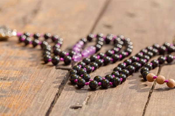 Magnifique collier mala ANCRAGE & HARMONIE a été réalisé à partir de Cristal de roche, d’Améthyste et de Tourmaline. Les perles ont été nouées à la main sur un fil écologique et résistant (label REACH). Ce mala est orné d’un pendentif en forme de goutte d’eau en Cristal de roche noire.